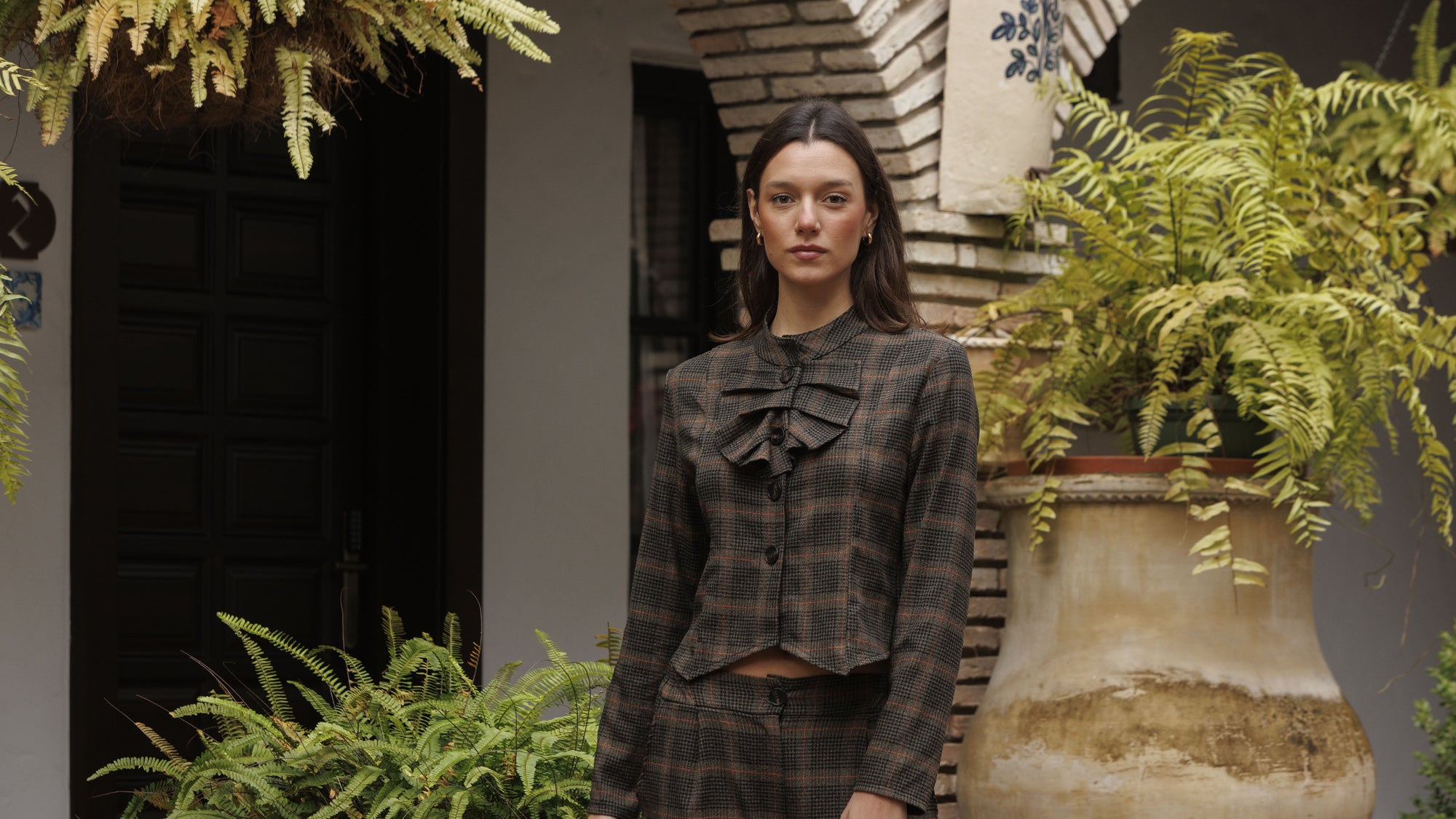 Capa/poncho "Tartan Heritage" - Paño de Lana con Cuadros y Cuello Mao