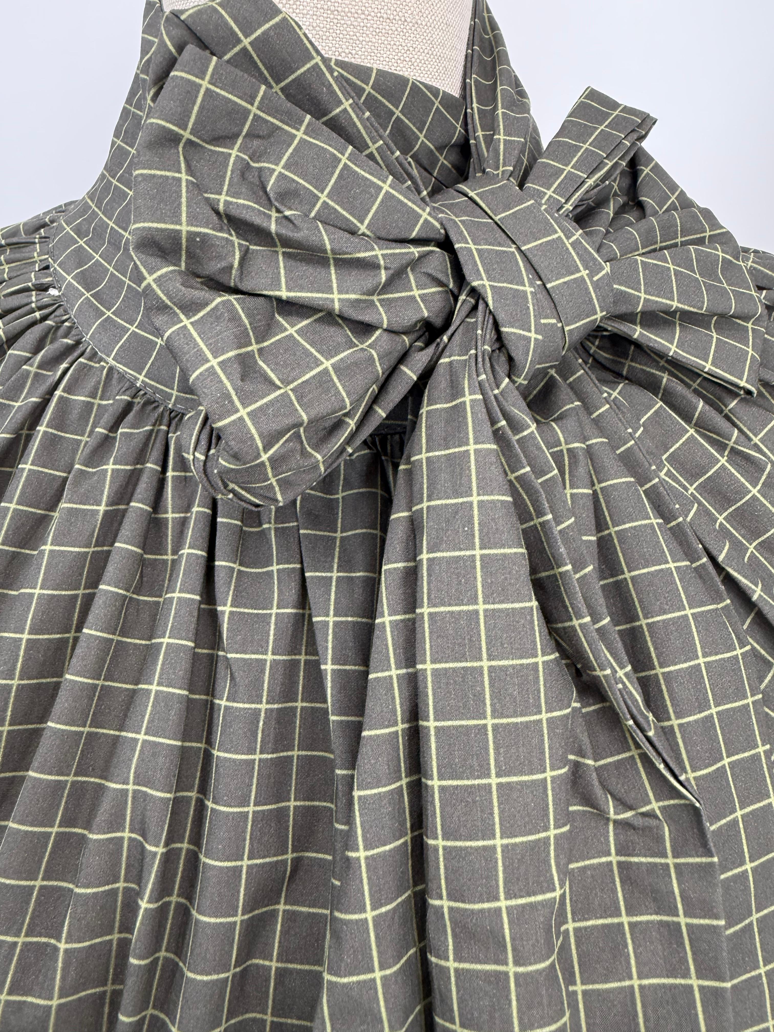 Blusa de Cuadros Verde oliva con Lazada al Cuello