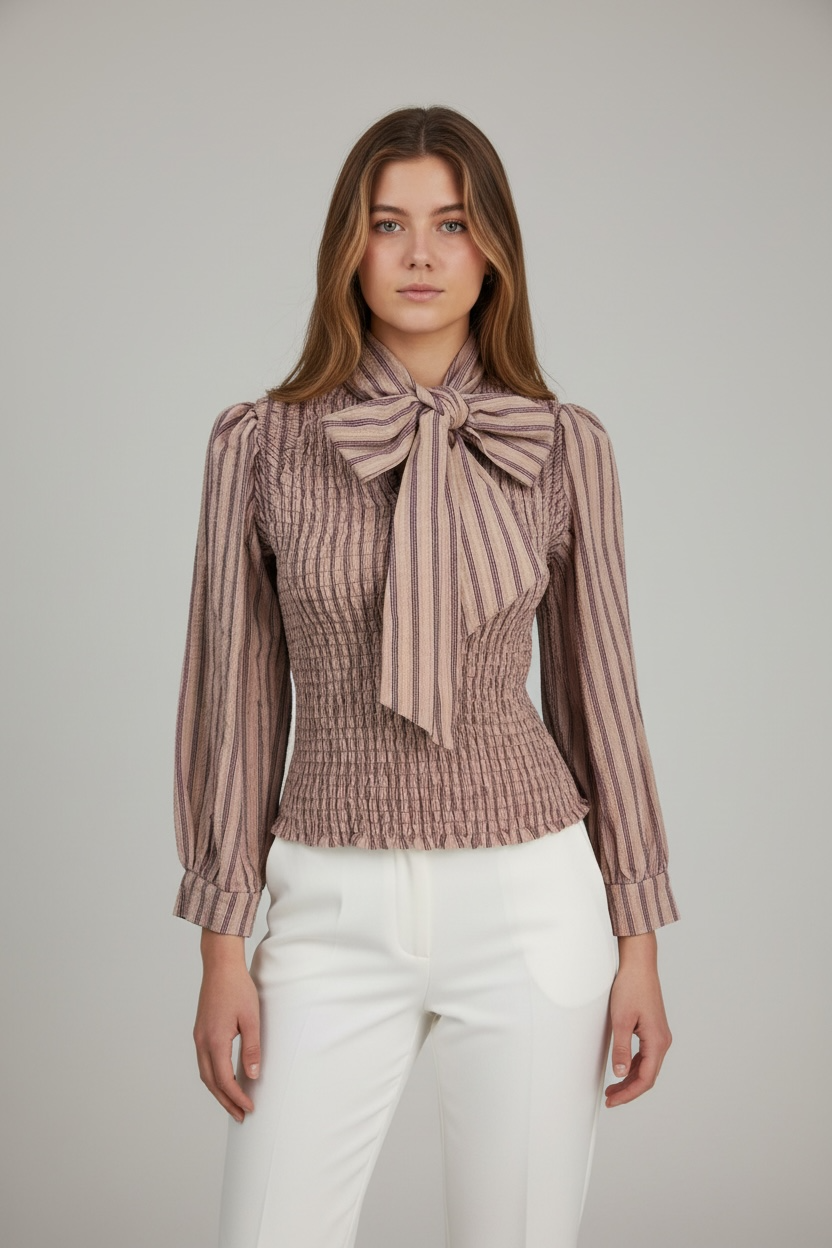 La Blusa Lazo Siena es una prenda elegante y femenina que eleva cualquier look con un aire sofisticado y atemporal. Su cuerpo fruncido realza la silueta de forma natural, mientras que la lazada al cuello añade un toque distinguido y muy favorecedor. Las mangas largas ligeramente abullonadas con puño ancho aportan equilibrio y estilo.Disponible en dos tonos suaves y fáciles de combinar