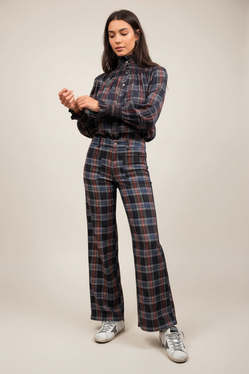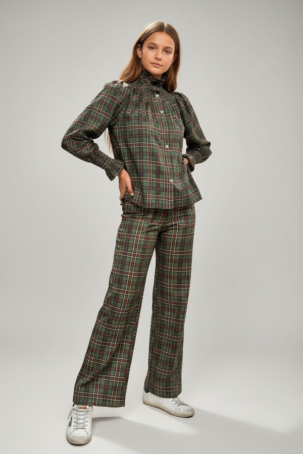 Conjunto formado por dos piezas que se venden por separado. El Conjunto LÍA de Cuadros une el encanto clásico del estampado de cuadros con un diseño actual, cómodo y muy favorecedor. Está compuesto por una blusa de cuello fruncido con botones delanteros y un pantalón de corte recto con caída fluida, creando un look equilibrado entre elegancia y estilo casual.