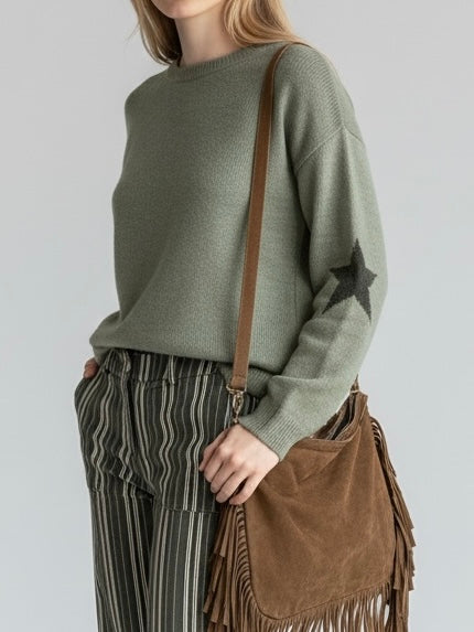 El Jersey Nara es la combinación perfecta de sencillez y detalle especial. Su diseño en tono verde suave aporta frescura y naturalidad a cualquier look, mientras que las estrellas en las mangas le dan un toque original y distintivo.
