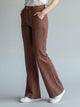 Su corte de cintura alta con detalle de doble botón acentúa tu figura, mientras que el diseño de rayas verticales crea un efecto visual de piernas infinitas. El ajuste holgado en las caderas que se cierra suavemente en el tobillo te brinda libertad de movimiento con un toque sofisticado. Perfectos para un look de oficina relajado con una blusa blanca (como en la foto) o para un fin de semana casual con tus zapatos planos favoritos.