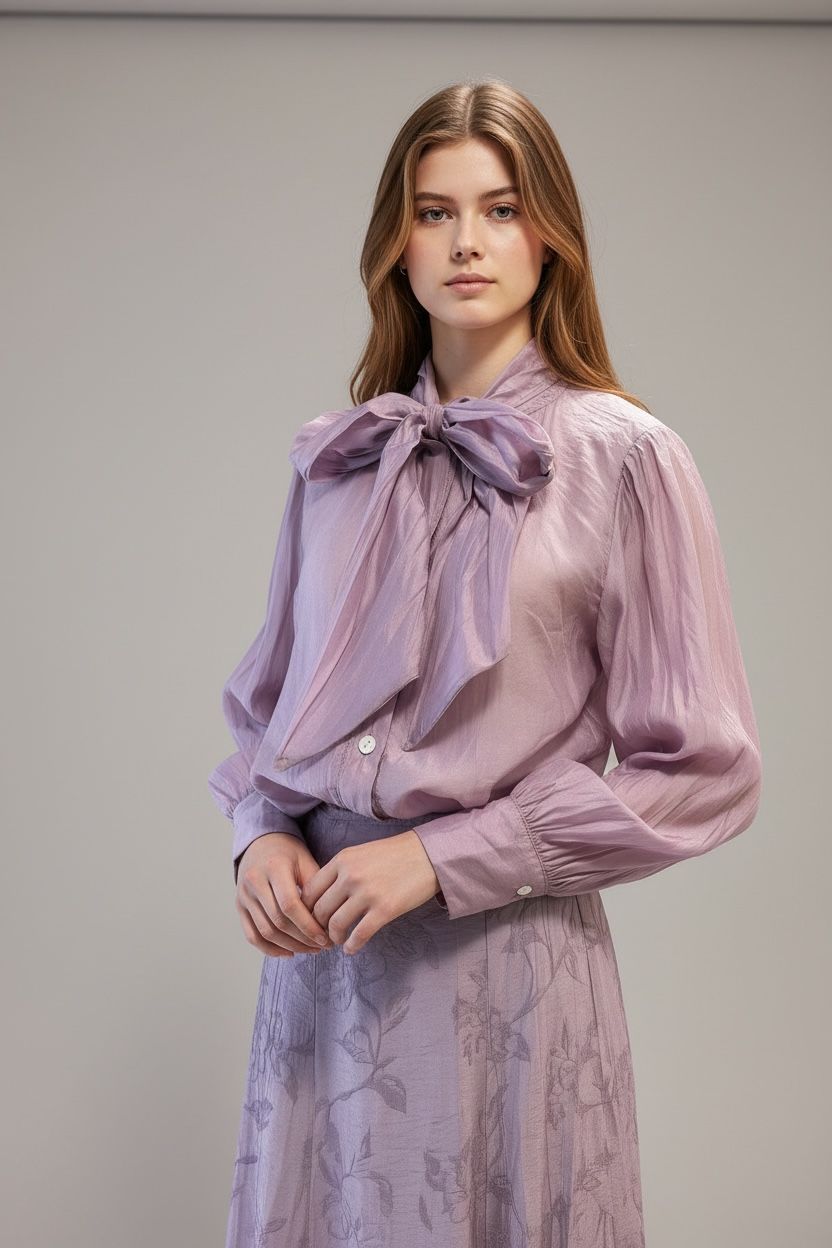 • Diseño Superior: Blusa de manga larga ligeramente abullonada con puños abotonados y un llamativo cuello con lazada XL (pussy-bow).