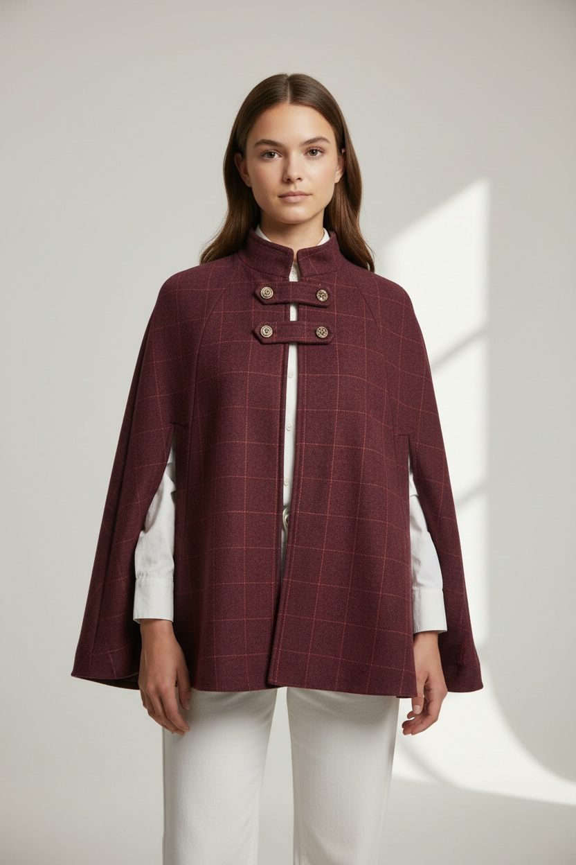 Capa/poncho "Tartan Heritage" - Paño de Lana con Cuadros y Cuello Mao