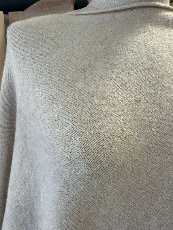 Nuestro poncho de punto de lana combina elegancia y calidez en una prenda versátil ideal para cualquier temporada. Su tejido ligero y suave aporta una caída fluida que realza la figura sin renunciar a la comodidad.