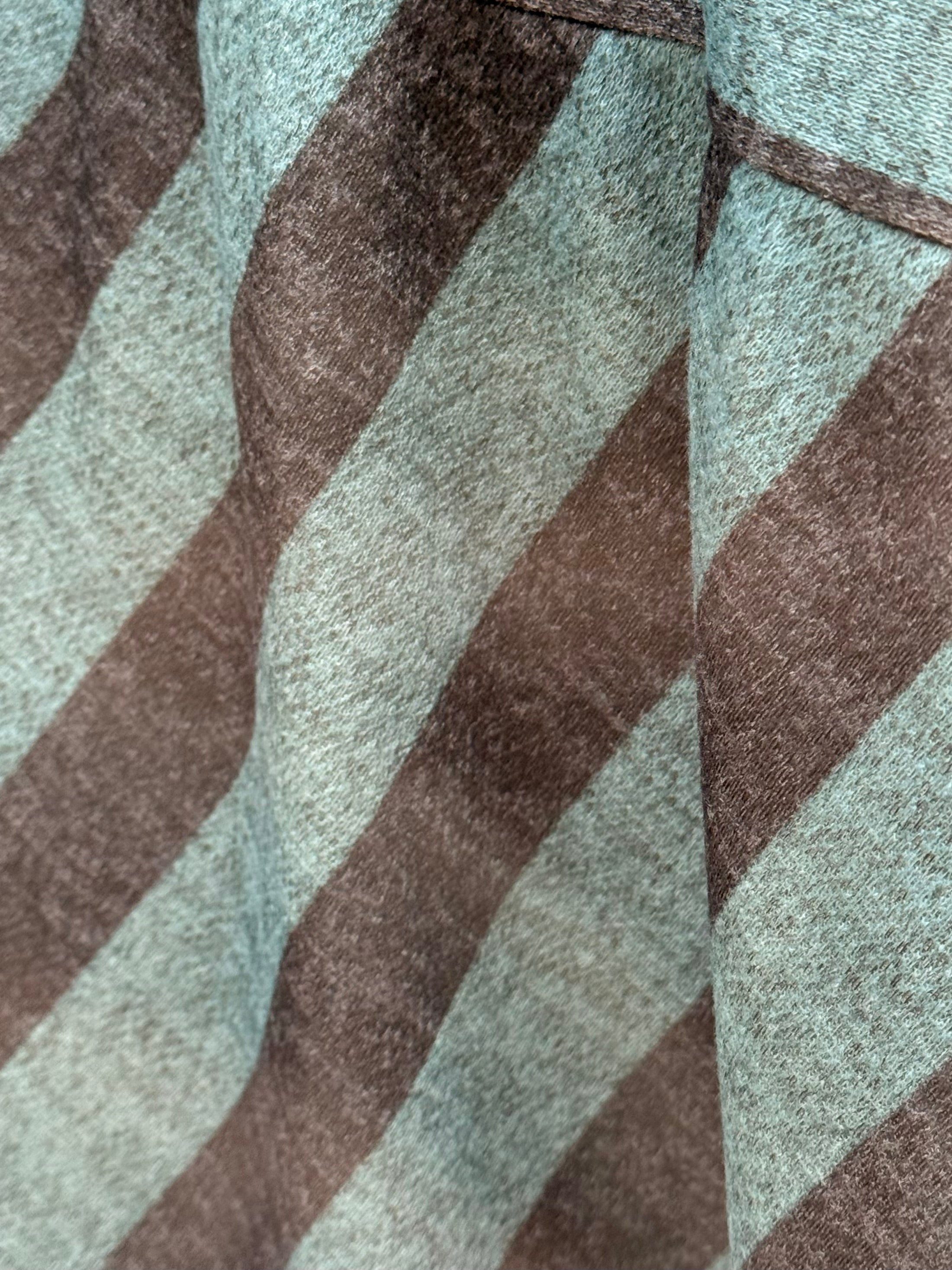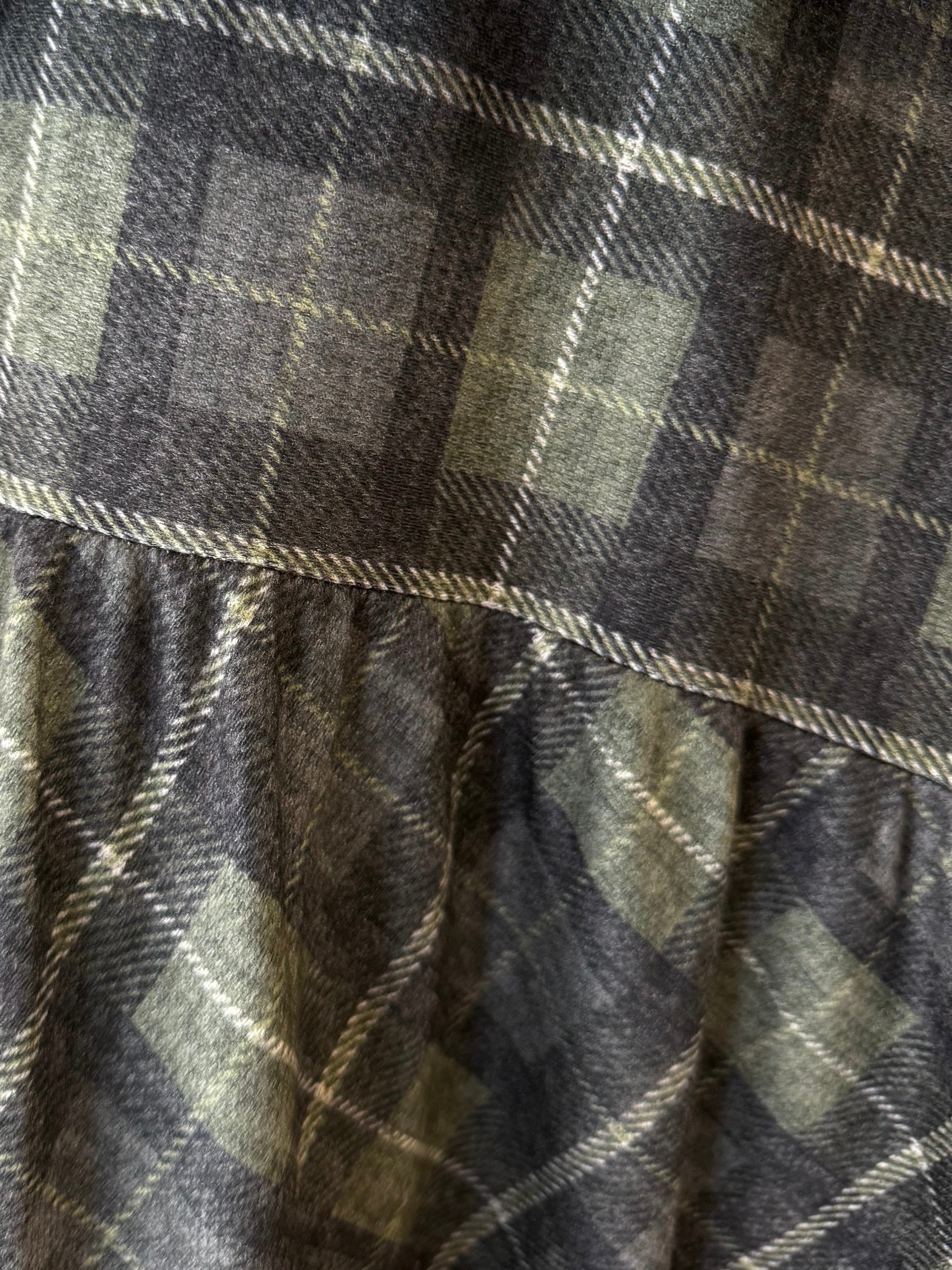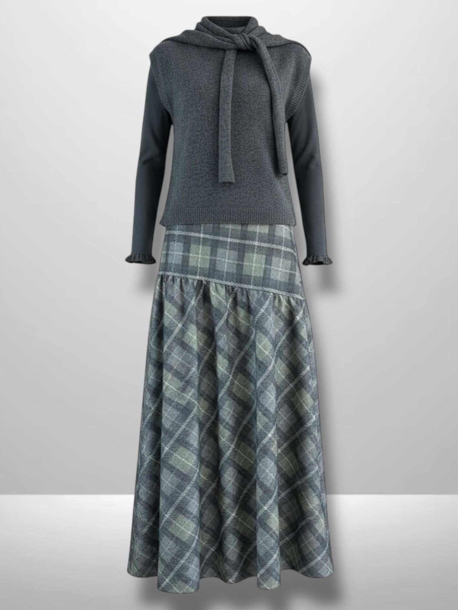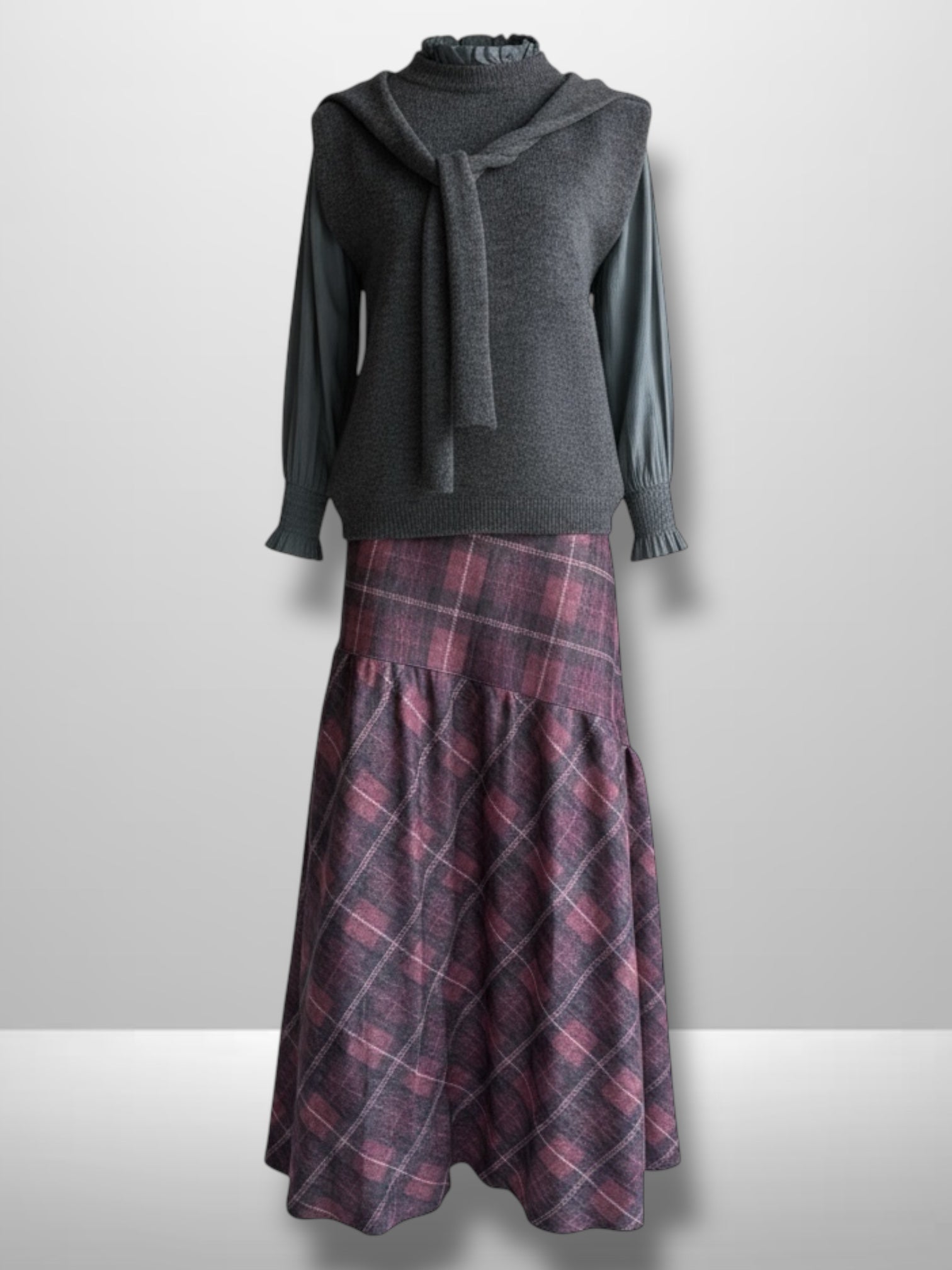 Falda midi-larga confeccionada en punto suave con caída fluida. Presenta un diseño con paneles diagonales que crean un efecto visual estilizador. Cintura ajustada sin costuras visibles y ligero volumen en el bajo para aportar movimiento. Perfecta para combinar con jerséis gruesos o camisas ligeras en los meses fríos.